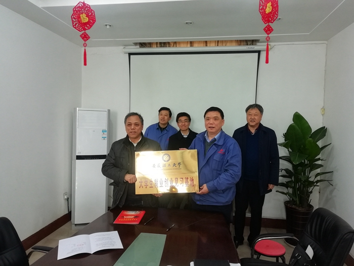 与安徽德邦化工有限公司党委书记、董事长刘默海共同签订安徽理工大学教学实习基地和大学生就业创业见习基地合作协议,并为企业授牌。