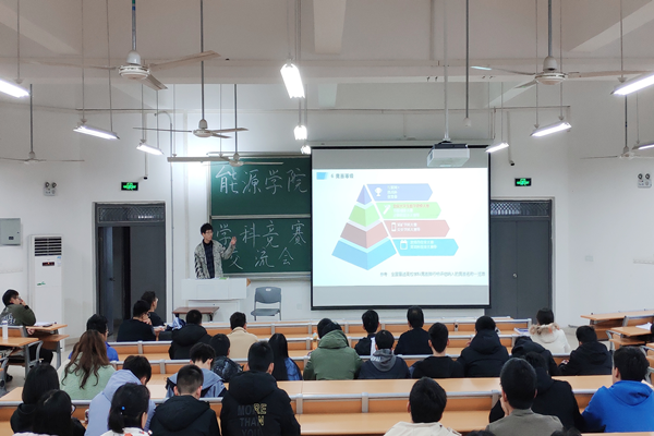 在天工201教室举办学科竞赛经验交流会。安全工程2016-5班袁昌宇同学作交流指导,足球分析预测