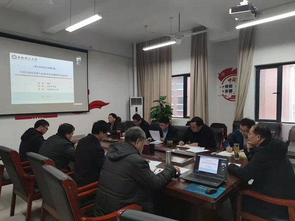 在宁远楼306会议室开展了2018级学术型硕士研究生学位论文中期答辩会。答辩会由副院长聂士斌主持,执行院长陆伟、副院长刘健、副院长马衍坤及其他相关教师参加了答辩会。