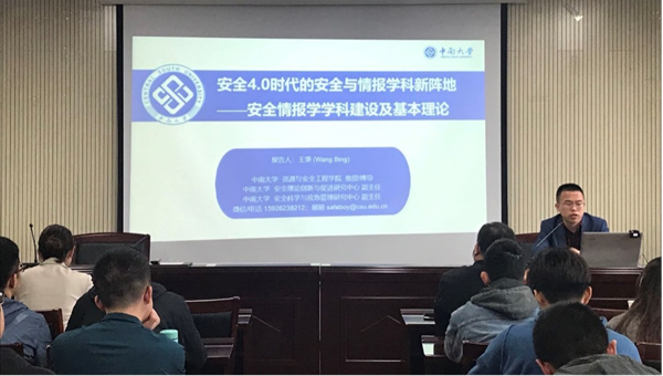 王秉以“安全4.0时代的安全与情报学科新阵地——安全情报学学科建设及基本理论”为题,从安全科学与安全情报概念、安全情报学学科建设的背景与基础、安全情报学的学科基本问题、安全管理中的安全情报本征机理、安全情报获取与分析的R-M方法、安全情报系统的理论框架、情报主导的安全管理方法和大数据开启安全情报学新时代等方面进行了详细介绍。