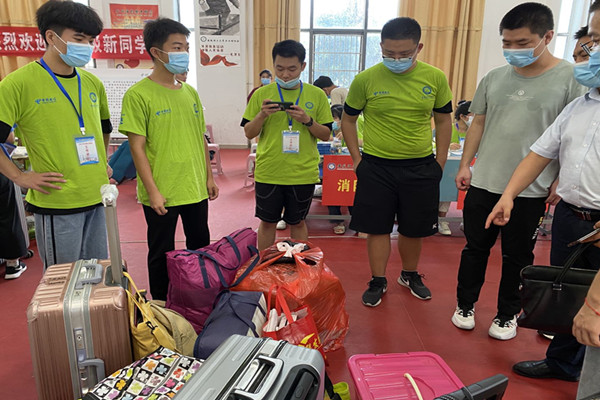 志愿者帮助新生搬运行李(摄影:王媛媛)