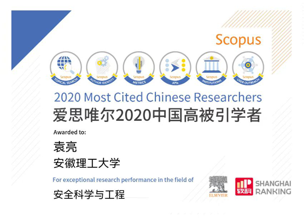 袁亮院士连续两年入选“中国高被引学者”榜单