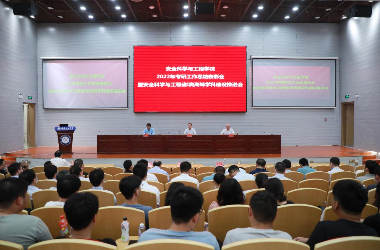 2022年考研工作总结表彰暨安全科学与工程省Ⅰ类高峰学科建设推进会在舜耕会堂举行。校党委副书记、校长袁亮院士,校党委常委、副校长郑明东、董雨出席会议。会议由郑明东主持。