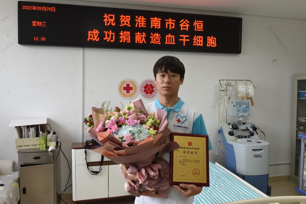 “00”年出生的谷恒,和许多同学一样,进入校园不久就参加了校园献血、造血干细胞捐献采样活动。2021年3月底,校团委在校园开展“爱在春天志愿服务季”活动,作为学校青年志愿者协会副会长、班级生活委员的谷恒,坦然地献血、留取造血干细胞捐献血样。2022年7月初,谷恒接到红十字会工作人员电话,得知自己和一位血液病患者初步匹配成功,谷恒感觉自己很是幸运,期待终于成真。在做高分采样时,得知同班同学陈晓明也要做高分,谷恒很兴奋,当晚两人就一起相互交流,相互帮助,共约捐献。本来高分在前的谷恒的捐献安排没有陈明的快,晓明捐献期间,谷恒一次次给晓明打电话,了解情况,给他加油,晓明捐献后回校,谷恒也是第一时间去探望,更加坚定了自己捐献的决心。接到捐献通知,尽管自己在紧张的备战考研,但谷恒还是欣喜,郑重地接过来这棒沉甸甸的生命火炬。