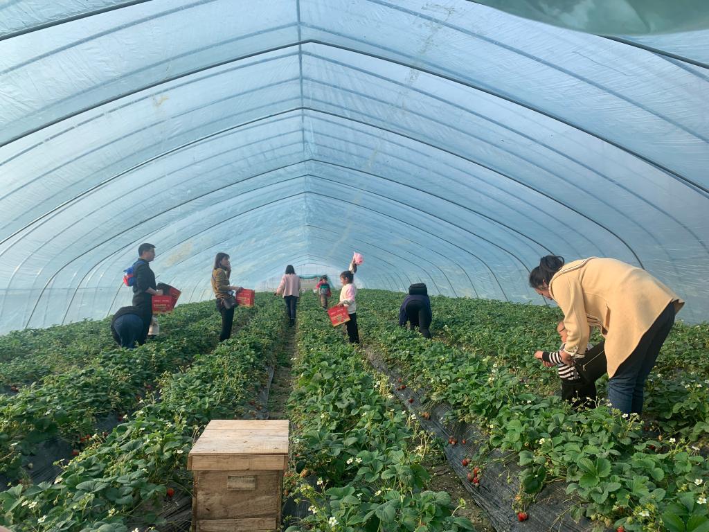 分工会组织全体女教职工开展踏青采摘草莓活动。