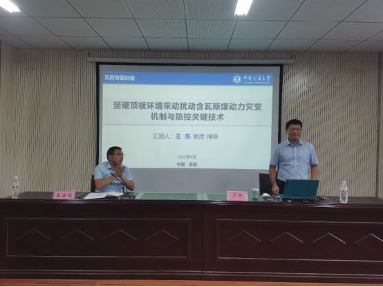 师生对“坚硬顶板条件下多灾害协同防控技术”等关键方向表达了浓厚兴趣,与王教授展开了深入的学术探讨。王教授强调,针对复杂开采地层环境精准剖析灾害发生机制,是优化多灾害防控方案、提升矿井安全生产保障能力的核心。