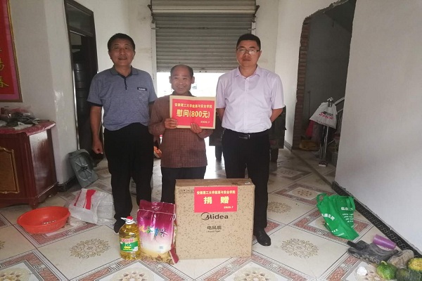 在我校驻村扶贫挂职干部秦淮滨以及村委会同志的陪同下,张向林一行走访慰问了对接帮扶的“五保”贫困户李兰英,为他们送上慰问金以及电风扇、粮油等慰问品,关心了解母子两人日常生活、身体健康等情况。李兰英一家对党和国家的扶贫政策非常感激,对学校的结对帮扶工作表示感谢。