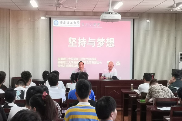 9月5日上午,我校95届采矿工程专业优秀校友、安徽理工大学贵州校友会常务副会长、贵州古坛酒业有限公司总经理李杰应邀回校,为能源足球分析预测