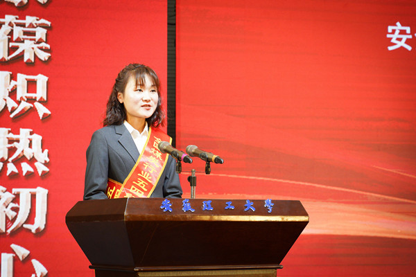 安全工程专业2017级5班的团支部书记万丽婷,很荣幸能够代表五四红旗团支部站在这里发言,请允许我代表班级团支部向潜心教导、悉心关爱我们的各位领导和老师们致以衷心的感谢和最诚挚的祝福。