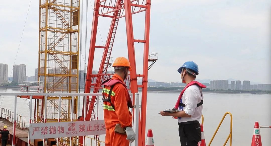 由于钱塘江新建大桥的地理位置特殊,施工过程中受潮汛、泄洪的影响较大,为了及早规避风险,项目部安全科积极与属地海事单位取得联系,共同研发了潮汛预报系统并设置了信息传达流程,通过风险源超前预报的方式规避了下部结构围堰内施工及水上作业的施工风险。