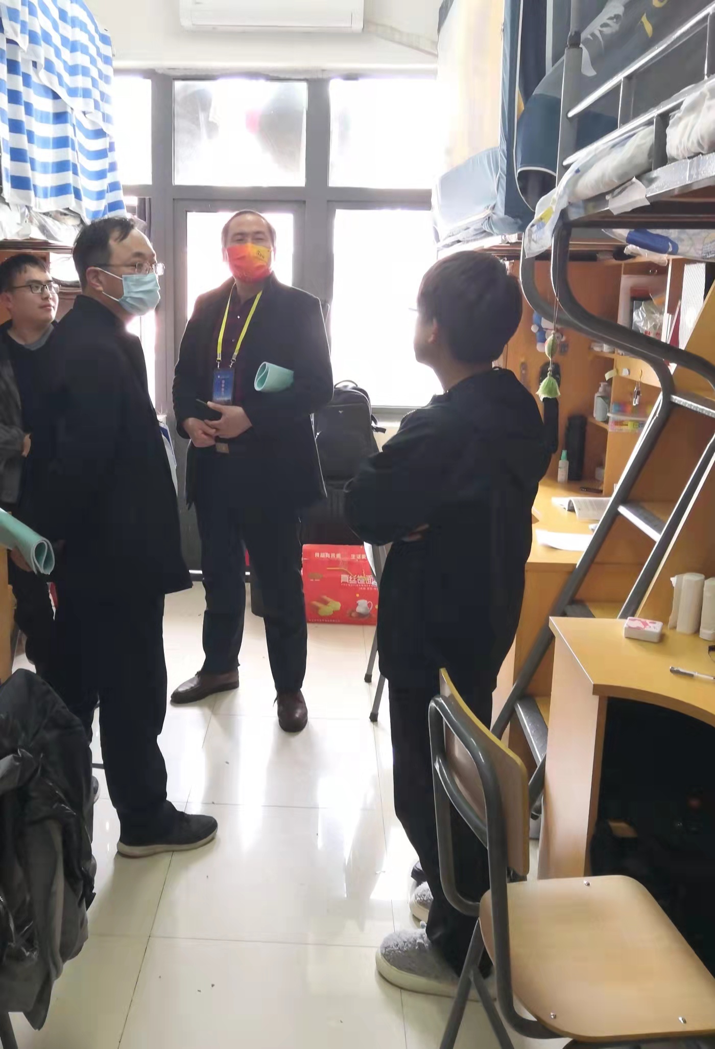 开展了“同心战疫”宿舍卫生评比活动。院长华心祝带队,全体留校值守教师参与检查评比。