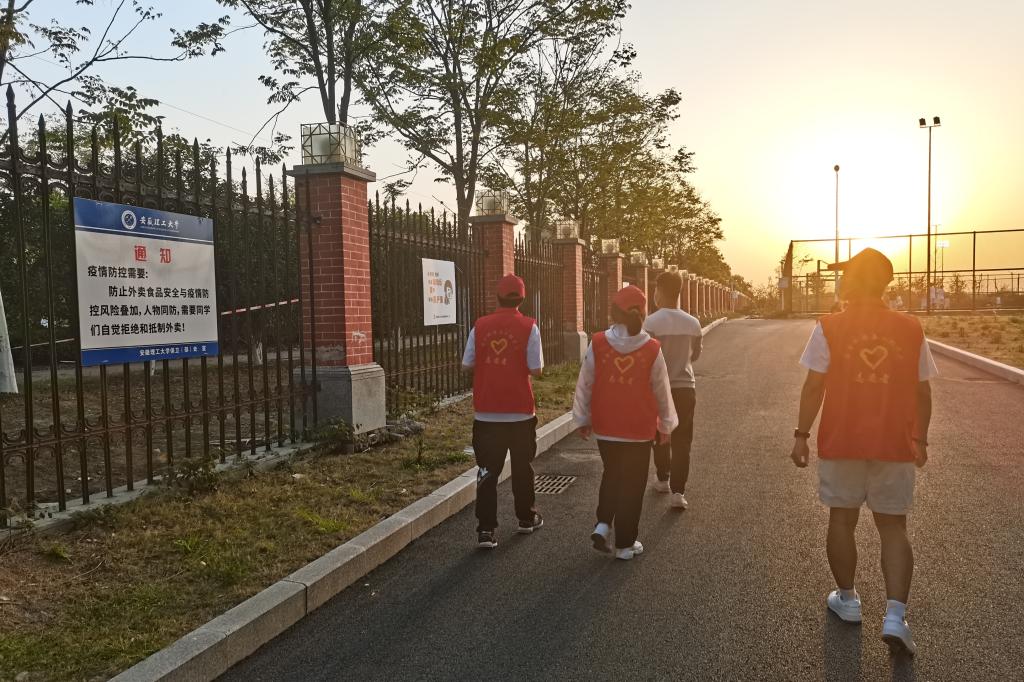 为防止外卖进入以及学生翻墙,大学生志愿者们积极响应学校疫情防控相关要求,营造安全稳定校园环境,他们在仁苑宿舍围墙段积极投身日常巡逻和风险点排查工作,俨然形成了校园一道靓丽的红色风景线。