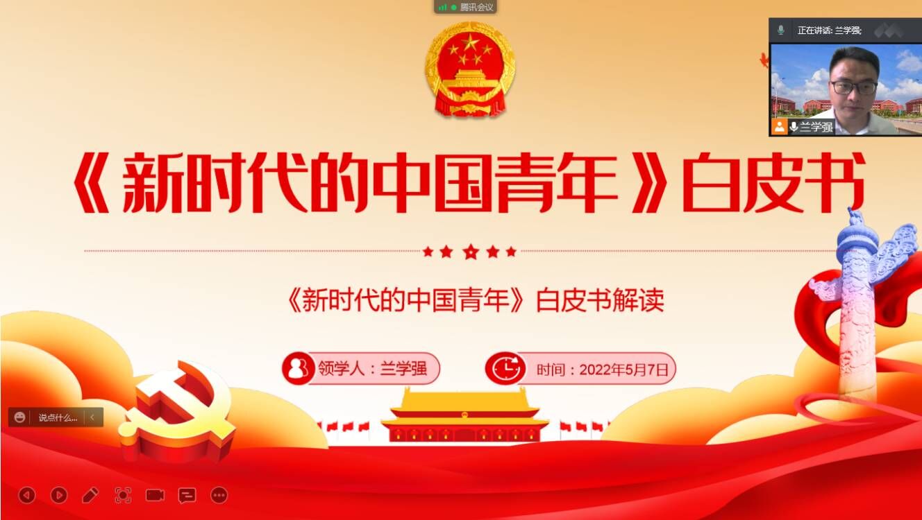 这部白皮书是我国首次专门就青年群体发布白皮书。是一部记录新时代中国青年发展事业成果、反映新时代中国青年精神风貌的重要文献。学习会上,兰学强首先对《新时代的中国青年》白皮书进行领读,并对白皮书的“新时代中国青年生逢盛世、共享机遇”、“新时代中国青年素质过硬、全面发展”、“新时代中国青年勇挑重担、堪当大任”、“新时代中国青年胸怀世界、展现担当”四个专题内容进行重点学习交流。