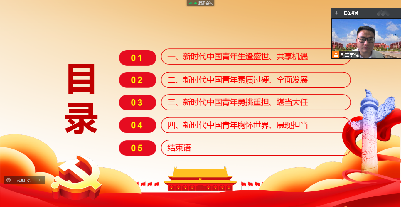 团委负责人兰学强进行领学,线上200余名学生骨干参加。