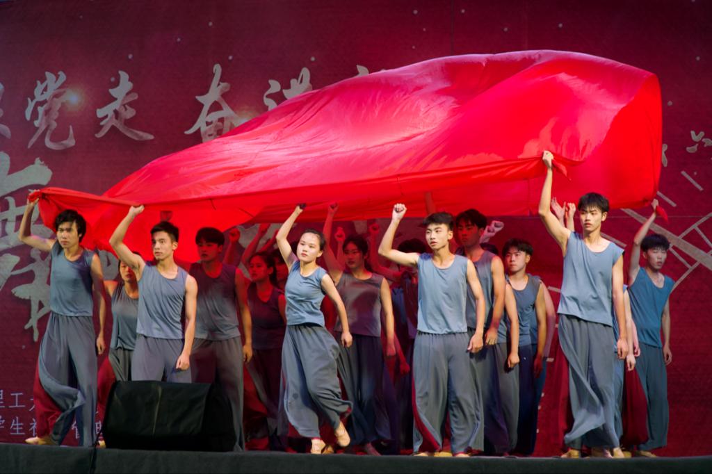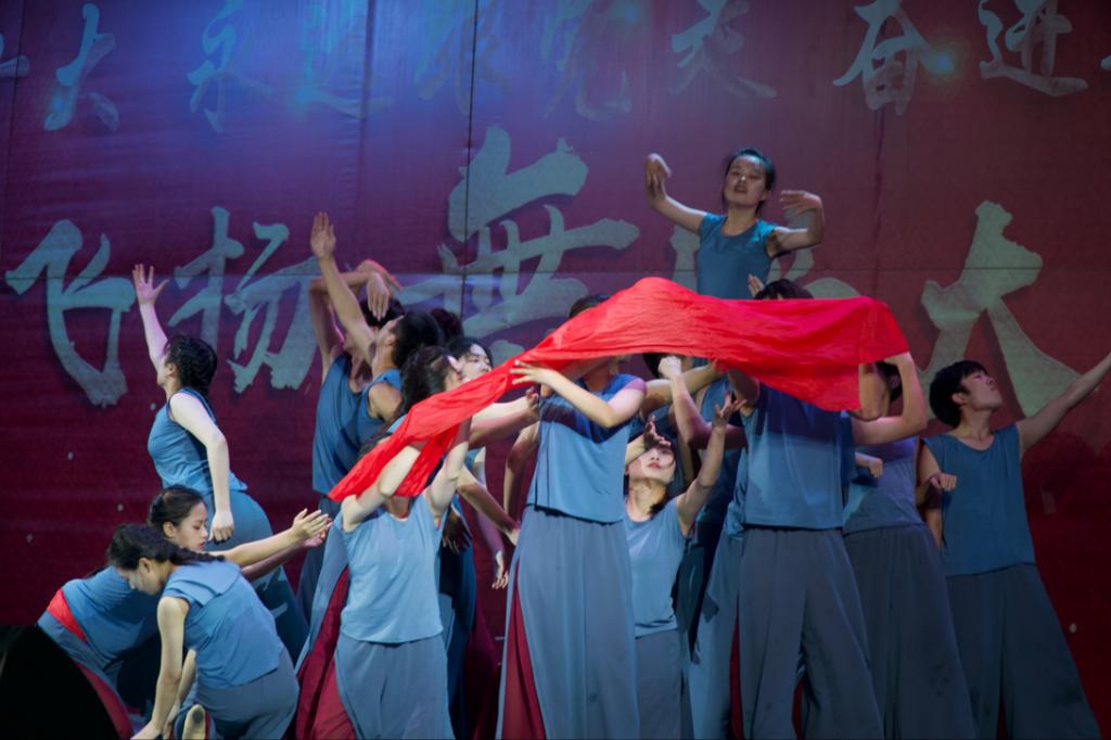 舞蹈队选取的舞蹈是《我心中的红》,她讲述了在革命战争年代,一群不怕死不怕苦的人,在心中信仰的指引下,引导人民群众走过战火硝烟,走过赤地千里,走过探索迷茫,最终与广大群众一起战胜了苦难,生活一片光明。