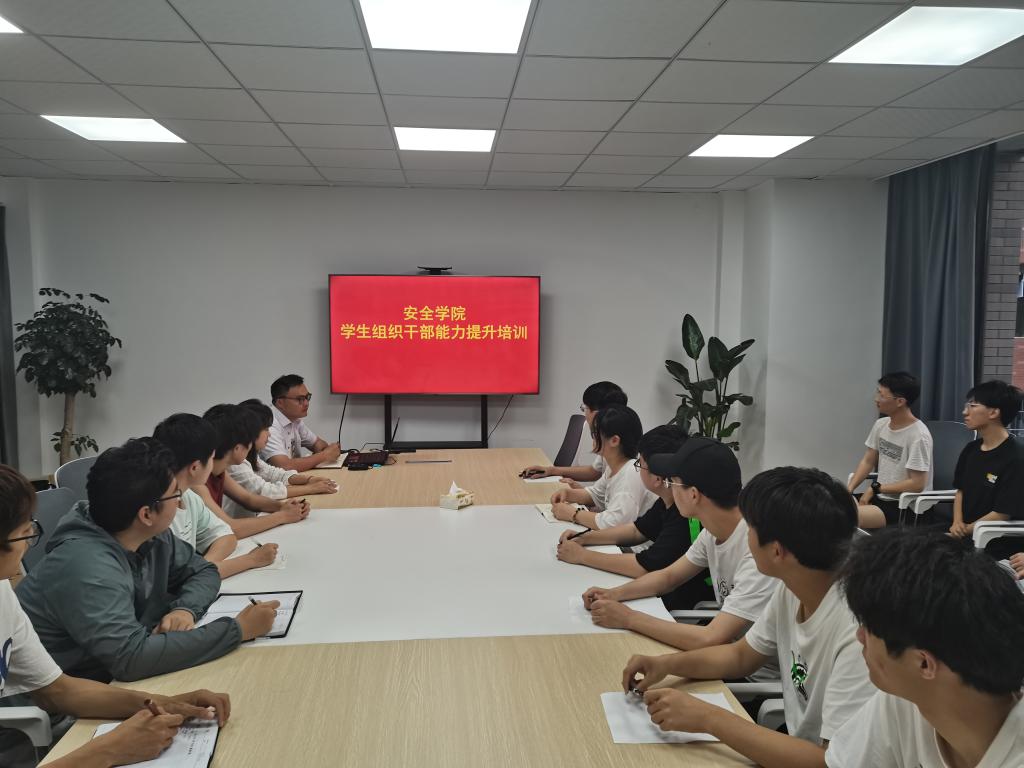 在“一站式”学生社区开展学生组织干部能力提升培训会。院团委负责人主讲,院学生组织干部参加培训会。