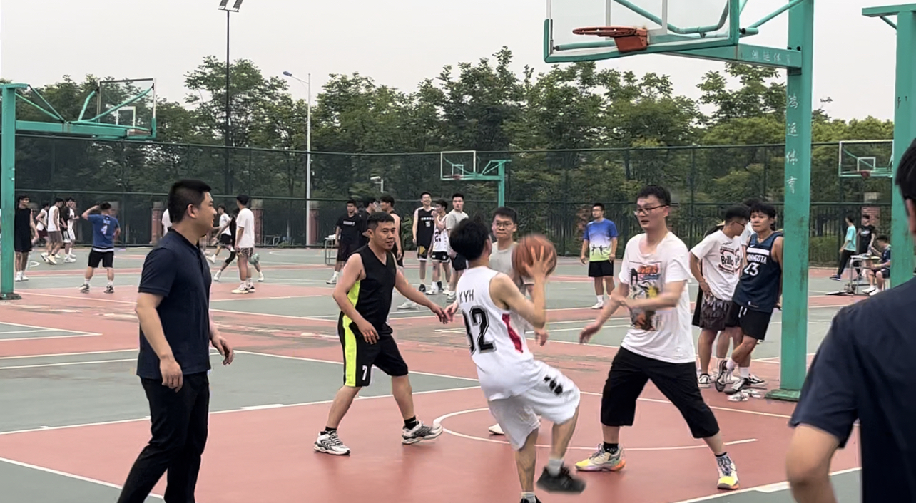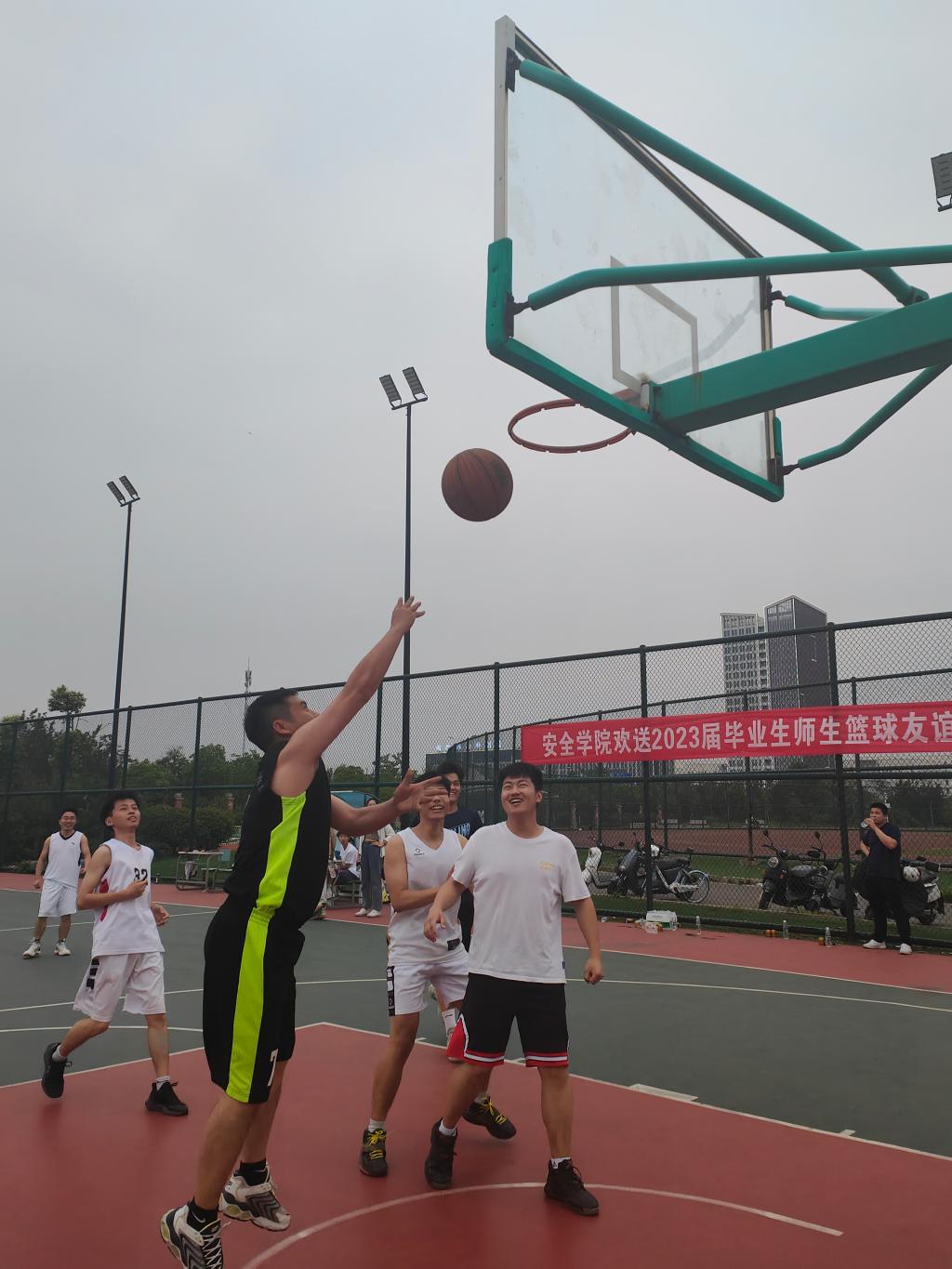 欢送2023届毕业生师生篮球友谊赛在仁爱篮球场举行,经过激烈角逐,最终教职工队略胜一筹。