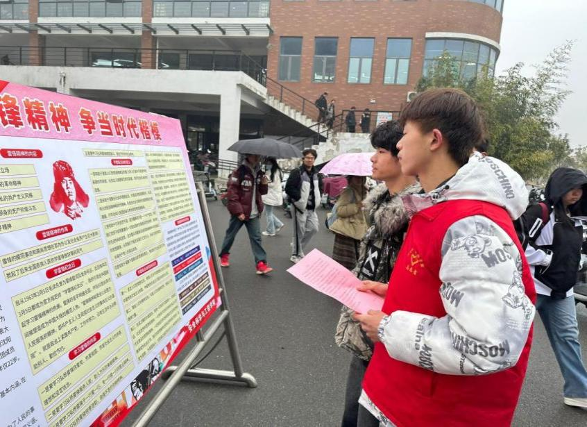 在仁苑食堂门口举办了“志愿共筑新时代,青春绽放新征程”的主题宣传活动。展板上一张张照片、一个个故事、一篇篇日记都详细介绍雷锋的成长历程。同学们在时空交织中走进那段过往的岁月,也在不知不觉中被雷锋精神浸润心灵。