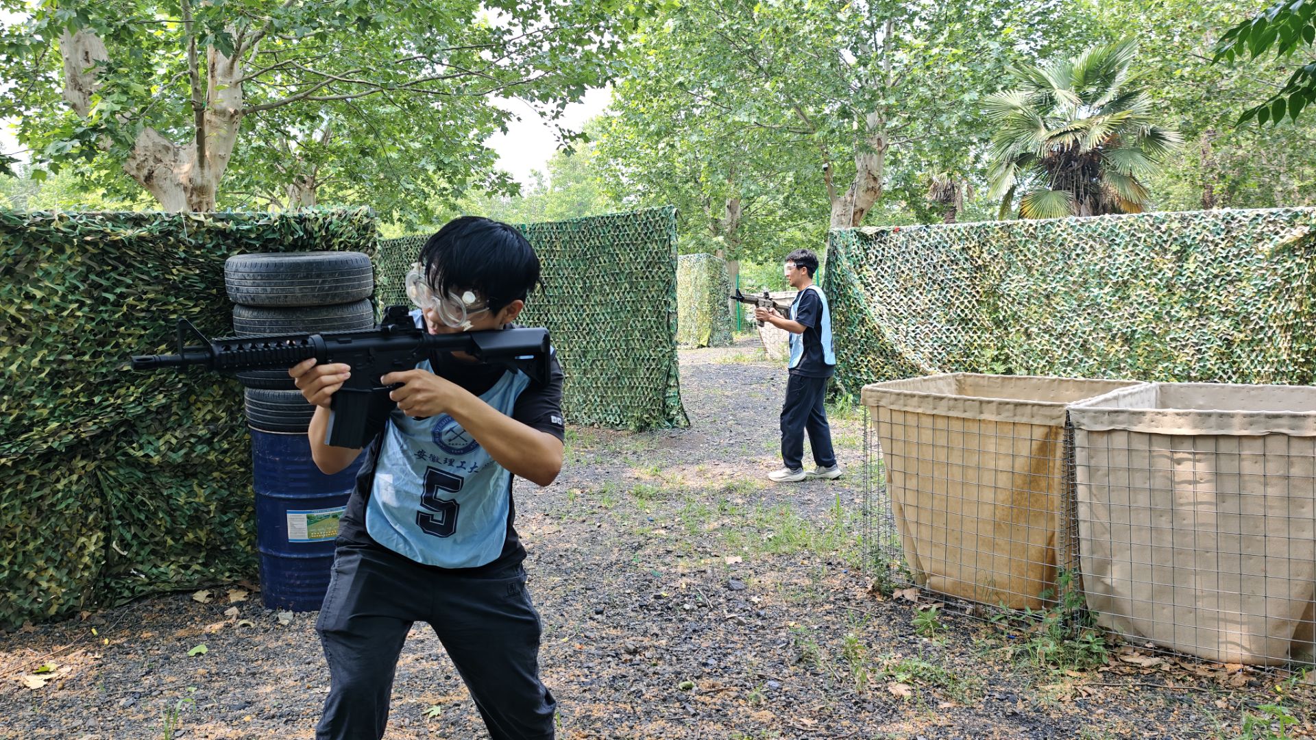 在校内国防教育基地开展了校园真人CS对抗赛的趣味活动。活动中,队员们在奔跑、射击、对抗中释放压力,体验运动的乐趣,大家在游戏中提升了团队凝聚力,增强了责任担当意识。