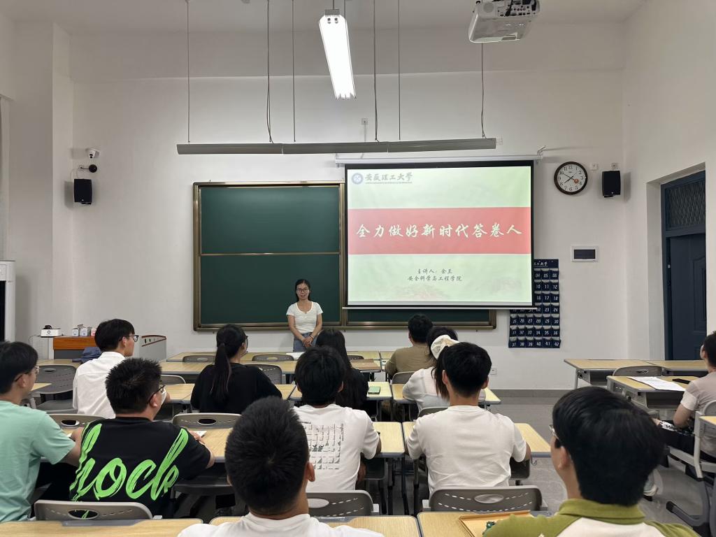 学生第二党支部书记余兰在明德楼106讲授了题为“全力做好新时代答卷人”的专题党课。党课结束后,党员们进行了集体宣誓,同时也纷纷表示要用实际行动丈量祖国大地,要用内心的感知把握时代脉搏,让青春在不懈奋斗中绽放出绚丽的光彩。