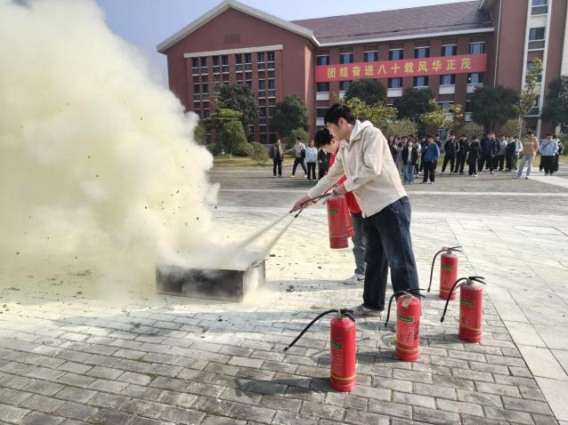 组织开展了灭火实操演练。师生们分批上场,亲身体验“提、拔、握、压”的操作流程,在实践中巩固知识、提升技能,切实增强了应对初起火灾的实战能力。