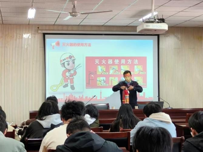 特邀学校消防工作人员举办专题消防知识讲座。结合高校校园消防安全真实案例,系统讲解校园火灾成因、预防措施、报警流程及疏散逃生等关键内容,进一步强化了师生“防患于未然”的安全理念。