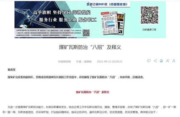 链接:《煤矿瓦斯防治“八招”及释义》//www.ccoalnews.com/news/202109/15/c149000.html