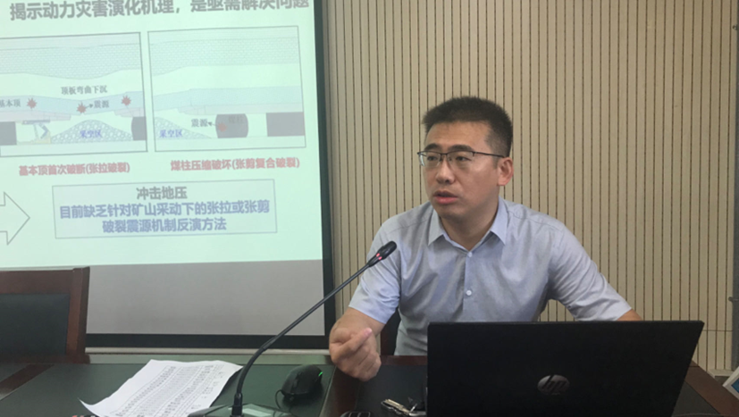 师生做了题为《煤岩破裂多物理场监测时空响应与致灾失稳耦合反演》的报告。刘教授指出,煤炭是我国的主体能源,其担负着国家能源安全的兜底保障作用;随着浅部资源枯竭和深地战略的提出,向深部要煤炭资源是未来的必然趋势和新常态;但在深部开采过程中,伴随发生冲击地压,是煤矿主要灾害之一。目前对冲击致灾演化机理尚未完全掌握,缺乏针对性的精准防控措施。基于此,开展了煤岩样内部应变精细化监测、煤岩体破裂震源定量反演的研究,通过多物理场耦合监测揭示裂隙面破裂时空演化机制。