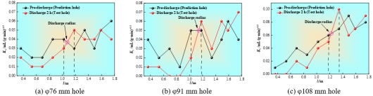 图15预测孔和测试孔对应深度处直线距离和K1值的变化