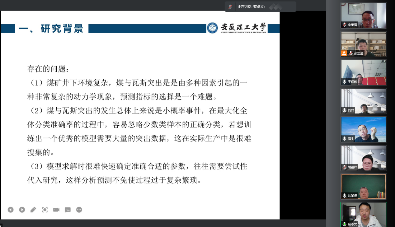疫情封控期间,为进一步营造学术氛围,集中展示研究生阶段性学术成果,2022年4月23日上午,2020级研究生分两组开展了线上学术论坛。出席第一组的评审专家有刘泽功教授、蔡峰教授、刘健教授、江丙友教授、马衍坤副教授、李尧斌副教授、高魁副教授,出席第二组的评审专家有薛生教授、王佰顺教授、吕品教授、胡祖祥教授、郑春山副教授、李重情副教授和华北科技足球分析预测